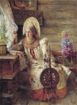 "Вино из одуванчиков" Брэдбери. Созвучно с моим волшебным ощущением детства, когда весь мир для тебя и даже новые теннисные туфли... )) Иногда перечитываю кусками "Пошехонскую старину", "Мертвые души", "Петра Первого" - этих за то, что там сам текст как румяный, запашистый пирог - вкуснятина. У Маковского есть замечательный цикл "Боярышни", мне нравится их рассматривать - лица, уборы... |